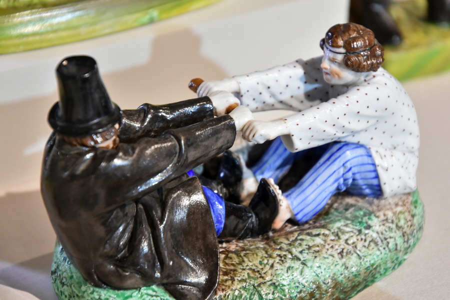 В этот раз фарфоровые статуэтки демонстрируют нам не просто крестьянский быт, но самую приятную его часть – развлечения, гуляния, праздники, которые сопровождались выпивкой, плясками и играми.
