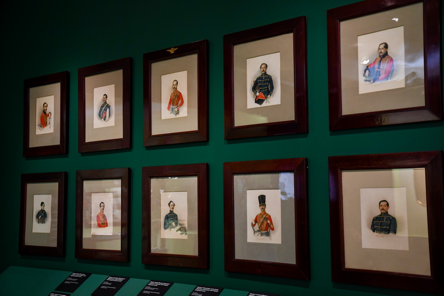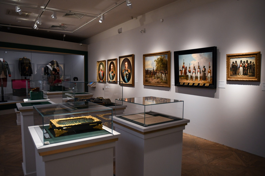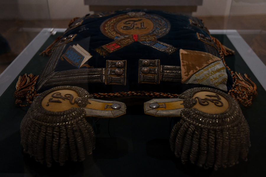 Большой раздел выставки посвящен августейшим шефам русских полков. Здесь находятся портреты членов императорской семьи, их великолепные мундиры, элементы быта.