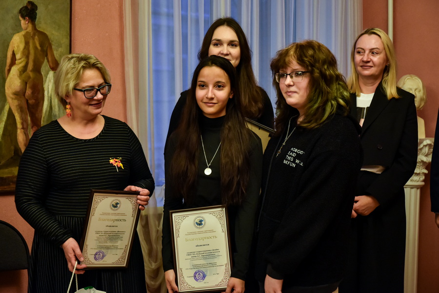 На юбилейной выставке отметили заслуги педагогов благодарственными письмами, почетными грамотами, а также медалями Союза художников России. Добавим, что золотой медали удостоился заведующий отделением живописи Константин Игоревич Евтеев. Он не только выдающийся художник, но также по его инициативе в колледже открылось и отделение скульптуры.