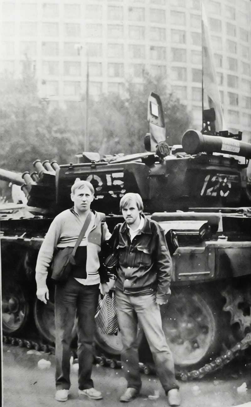 В Москву прибыли 20-го вечером. Прошли через баррикады вокруг Белого дома, походили туда-сюда. Но даже после того, как, в ожидании газовой атаки, мы все получили по противогазу, особого ощущения опасности и каких-то больших событий не было. Павел в итоге убежал к своим московским друзьям, а мы с Володей Даниловым отправились гулять по ночным улицам. В итоге неожиданно оказались в самой гуще трагических событий.